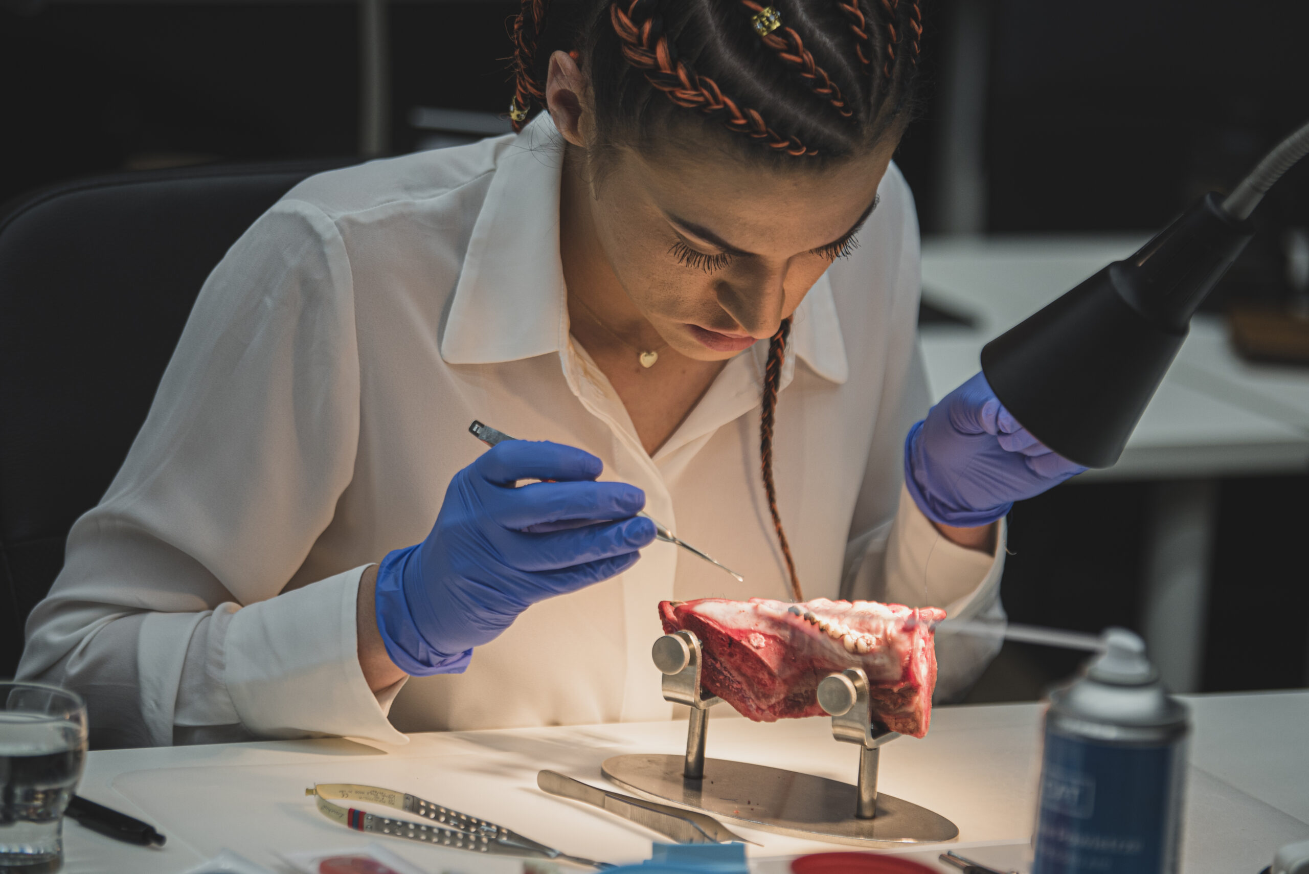 - techniki i zastosowania cięcia w obrębie dziąsła rogowaciejącego, dziąsła ruchomego do wykonywania płatów pełnej grubości i płatów dzielonych, dobór odpowiednich instrumentów – ćwiczenia na preparatach zwierzęcych